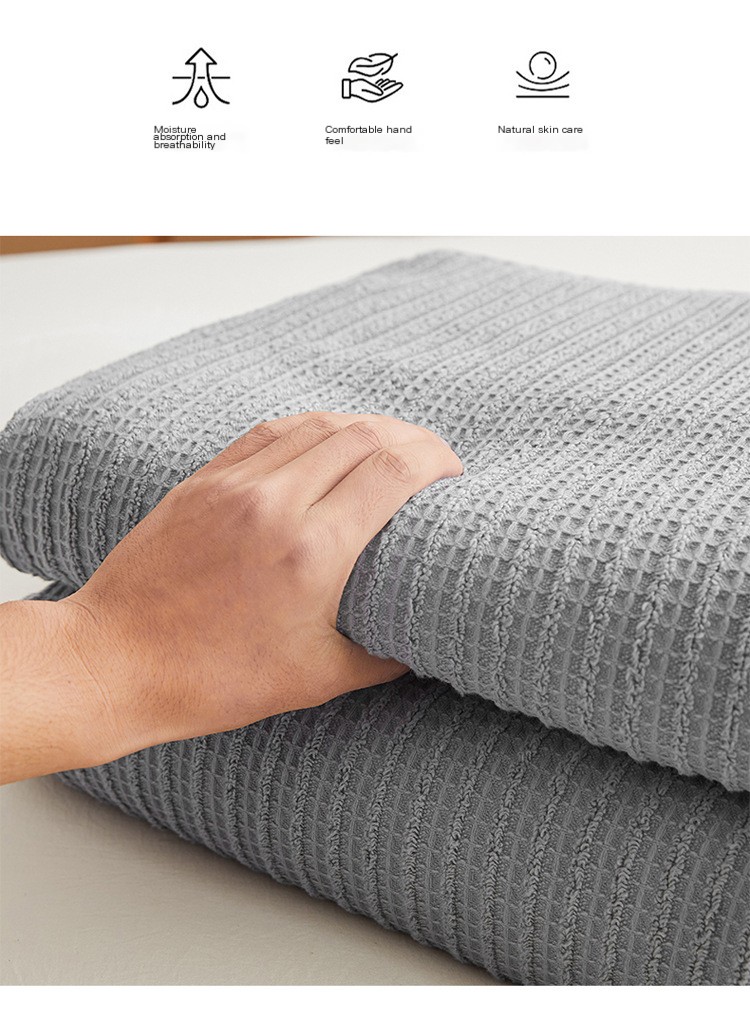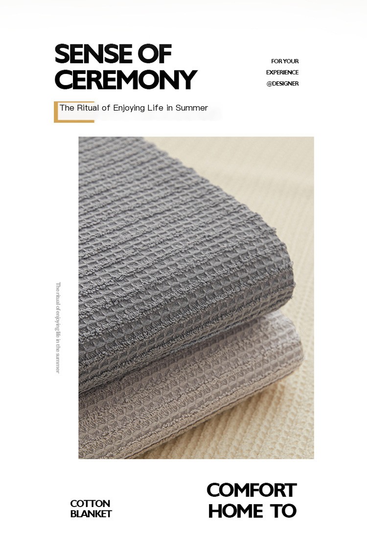 Disfruta de la suavidad y frescura del Nordic Waffle Blanket, una manta ligera elaborada en 100% algodón puro. Su textura tipo panal (jacquard waffle) favorece la transpiración y mantiene una temperatura ideal durante el verano o en habitaciones con aire acondicionado. El diseño minimalista y los tonos neutros la convierten en el complemento perfecto para cualquier recámara moderna.