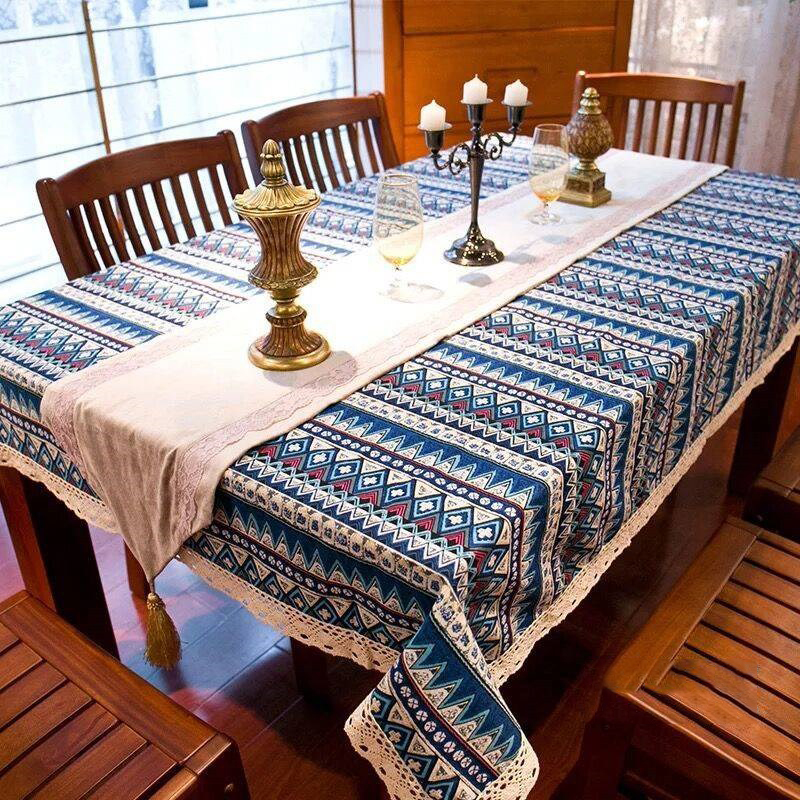 Transforma tu comedor con el encanto cultural del mantel Ethnic Charm, una pieza decorativa que combina tradición y estilo moderno. Su diseño de patrones geométricos en tonos cálidos, junto con el delicado borde de encaje, crea una mesa con personalidad, ideal para reuniones, cenas familiares o decoración diaria.